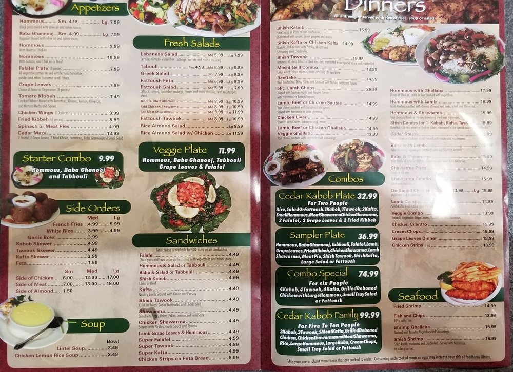 Introducing Cedar Kabob & Cafe, a Mediterranean gem in Sterling Heights, MI. Known for their flavorful dishes and friendly service, this restaurant offers a variety of appetizers like Hommous with Galaba and fresh salads like Lebanese Salad and Fattoush Tawook Salad. Customers rave about the delicious falafel, lamb sandwiches, and hearty lunch specials. The garlic sauce may not be the best, but the food is steaming hot and well-seasoned. With generous portions and a cozy ambiance, Cedar Kabob & Cafe stands out as one of the best Mediterranean spots in Michigan. Don't miss out on their rice pudding and shawarma wraps for a truly satisfying dining experience.